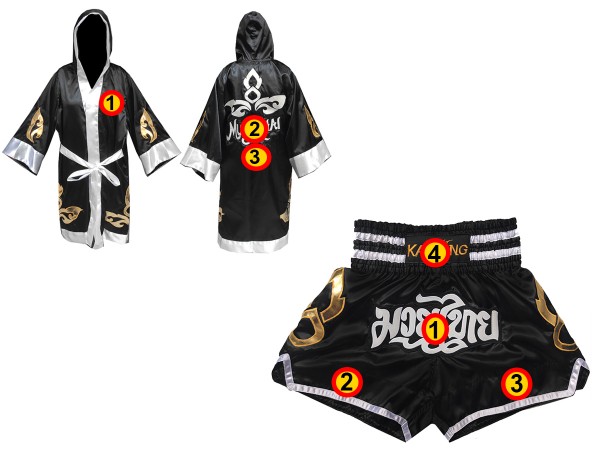 Custom Muay Thai robe with matching Muay Thai shorts with your name. High quality satin Muay thai clothes set from Thailand.